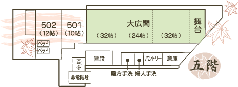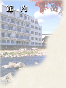 【館内のご案内】 収容人数・・・・100名様 客室・・・24室 (全室冷暖房完備・トイレ付き) 浴場・・・殿方大浴場風呂・殿方野天風呂/婦人大浴場風呂・婦人野天風呂 川岸露天風呂「もみじの湯」(公共の湯) パブリック施設・・・大広間(32畳×2間・24畳×1間)喫茶コーナー・ロビー・会議室 無料駐車場完備 喫煙について・・・ 受動喫煙法の関係で御部屋での喫煙は御遠慮いただいております。 喫煙は玄関の外側となっております。